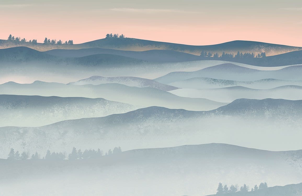 Bring a touch of sublime class to your living space with this elegant mountain Wall Murals. The majestic dusty blue mountain peaks gives a mesmerizing effect to the overall design. This photorealistic design adds intense depth and character to the walls and intrigues the onlooker with a calming effect. Experiment using this wallpaper in your living room or dining space to add finesse to your interiors and to keep the space minimalistic.