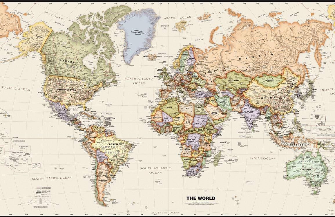 Know this world from A to Z with this custom-made map Wall Murals. This on-trend map of the world is a fantastic background for your rooms. All of the countries and regions have been clearly detailed in this map. Suitable for any places in your home office, bedroom and hallway.