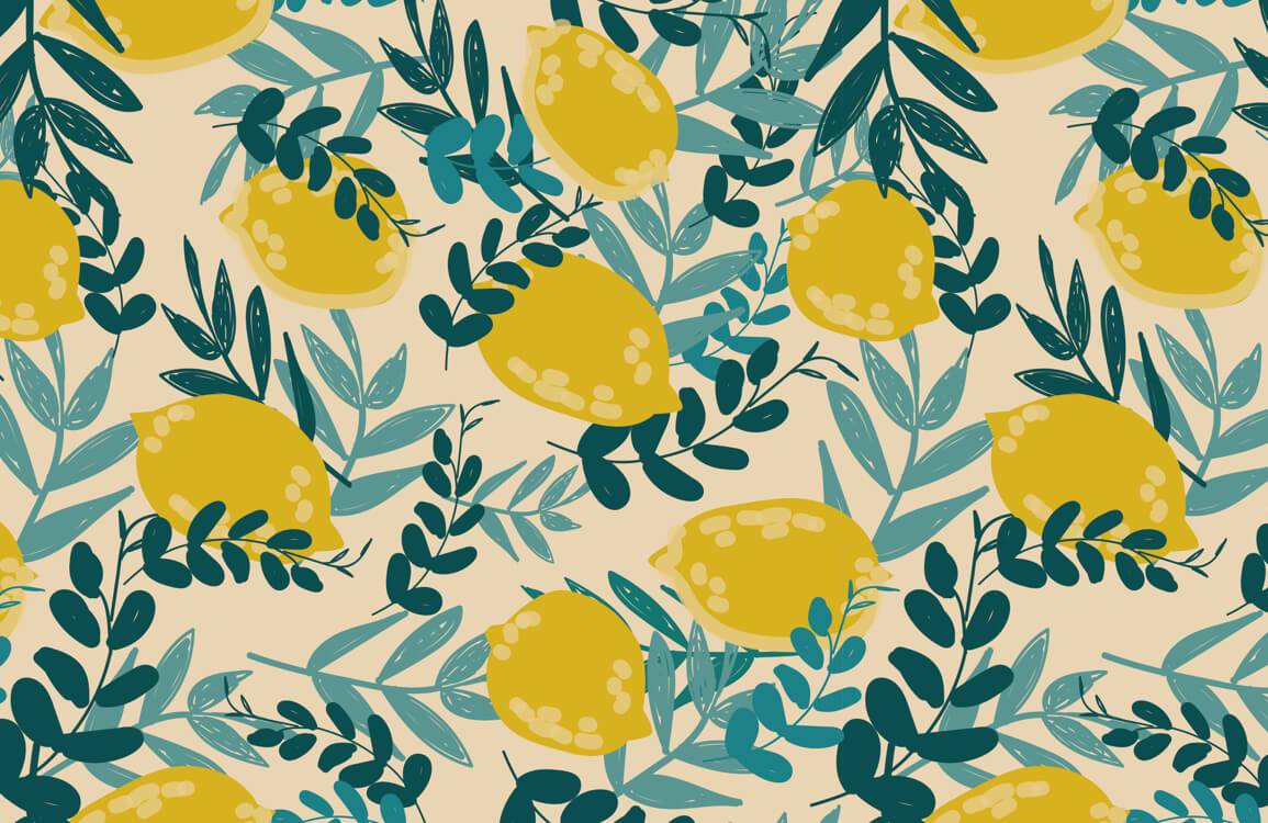 Get your interiors a fresh look with this made-to-measure lemon Wall Murals. This beautiful hand-drawn lemon with green leaves pattern under an earthy tone background will be ideal wall decal for all your bedroom, living room, kitchen or even your kids room.