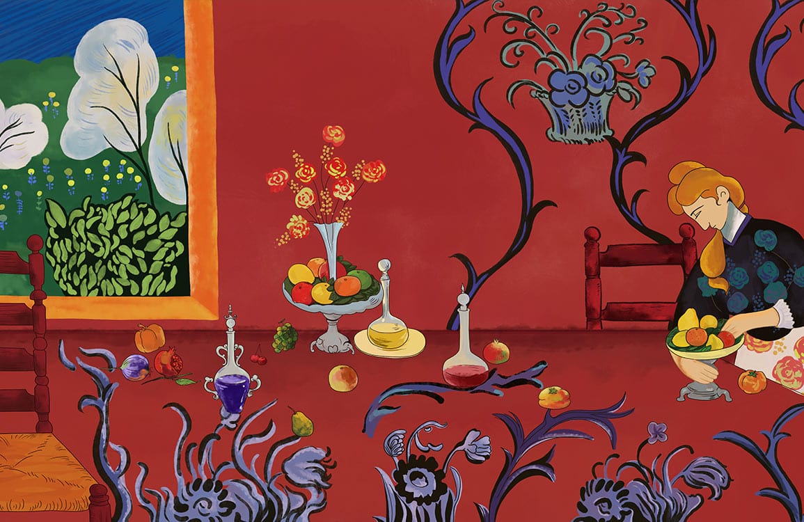 Dine at the Madam's table tonight. Our versatile Madam's Dinner Party Mural Wallpaper features a feast of food, flowers, and glassware set for a night of leisurely indulgence. Chic and sophisticated, yet comical and fun, it will bring the decadent spirit of Victorian-era decor to any space. With all the fine food and drink you could wish for, this enchanting setting sets the stage for your guests to toast one another and enjoy their time spent together. This wallpaper also allows you to create the look of a dining room in an unusual location—like the living room or kitchen—since the design is applied directly to the wall.