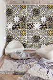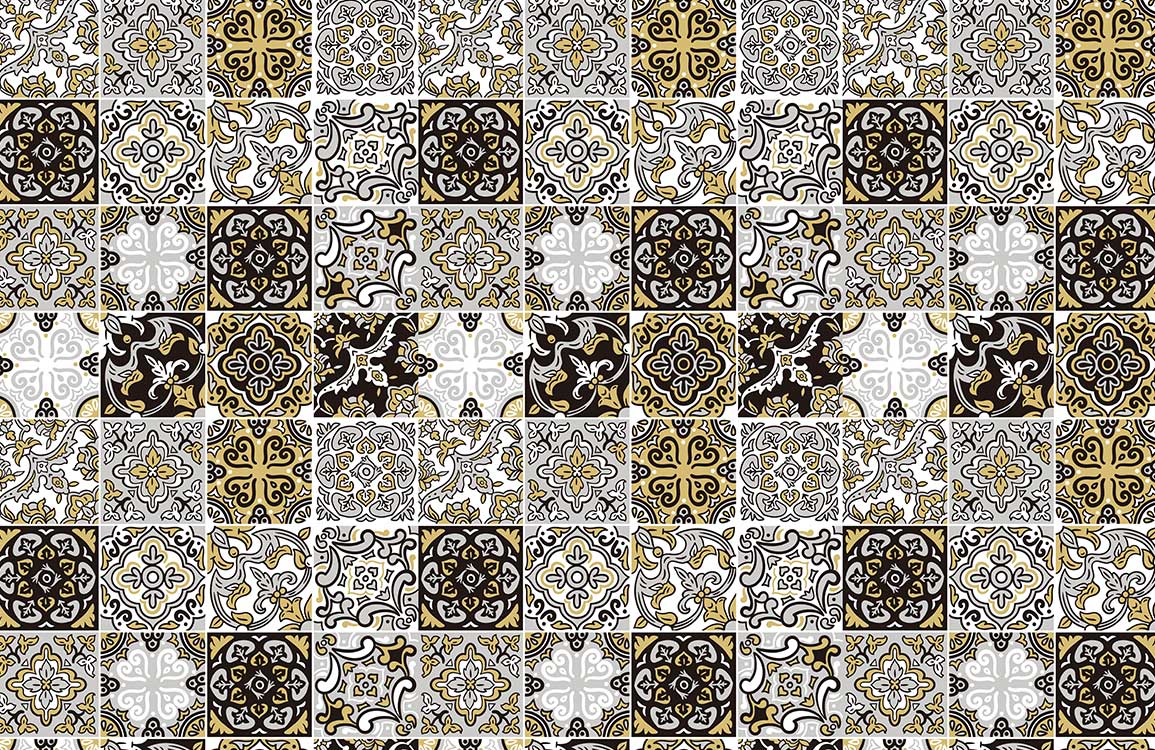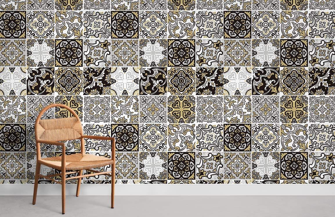 Welcome the floral tile wall mural into your space and create a modern home style. This floral art tile texture wallpaper is designed in black, yellow and grey under a white tone background, which is a perfect match to any room with sophisticated, modern, or contemporary furniture. Available in peel & stick and permanent paper types with child-safe inks. Get ready for a stunning interior design!