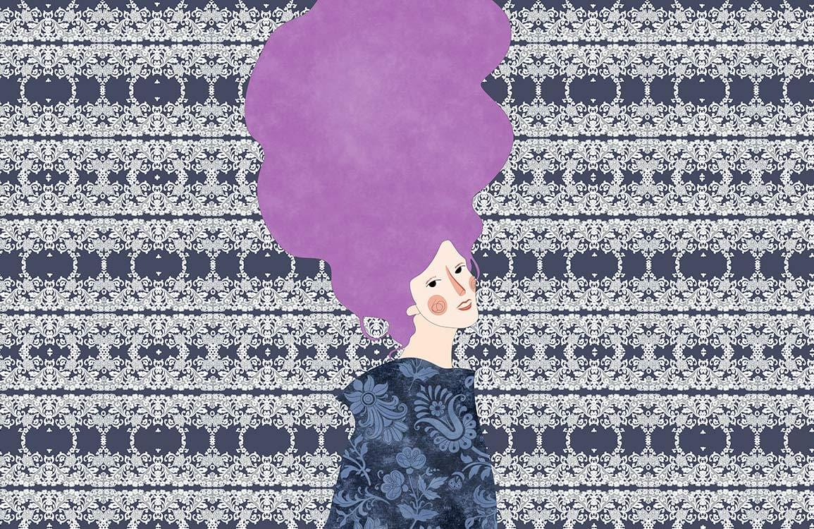 Grace your walls with elegance with this beautiful modern Lady Wall Murals. This repeat pattern design of Bohemia embroidery flower pattern and purple hair young lady is a treat to tired eyes as it instantly beautifies your walls with its simple grace. The grey colour imparts an air of sophistication to the interiors as it does not overwhelm the look of the space. Perfect wall paper for girl's room.