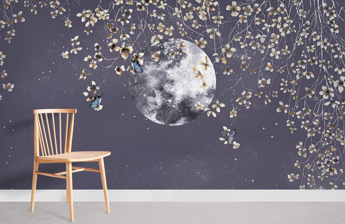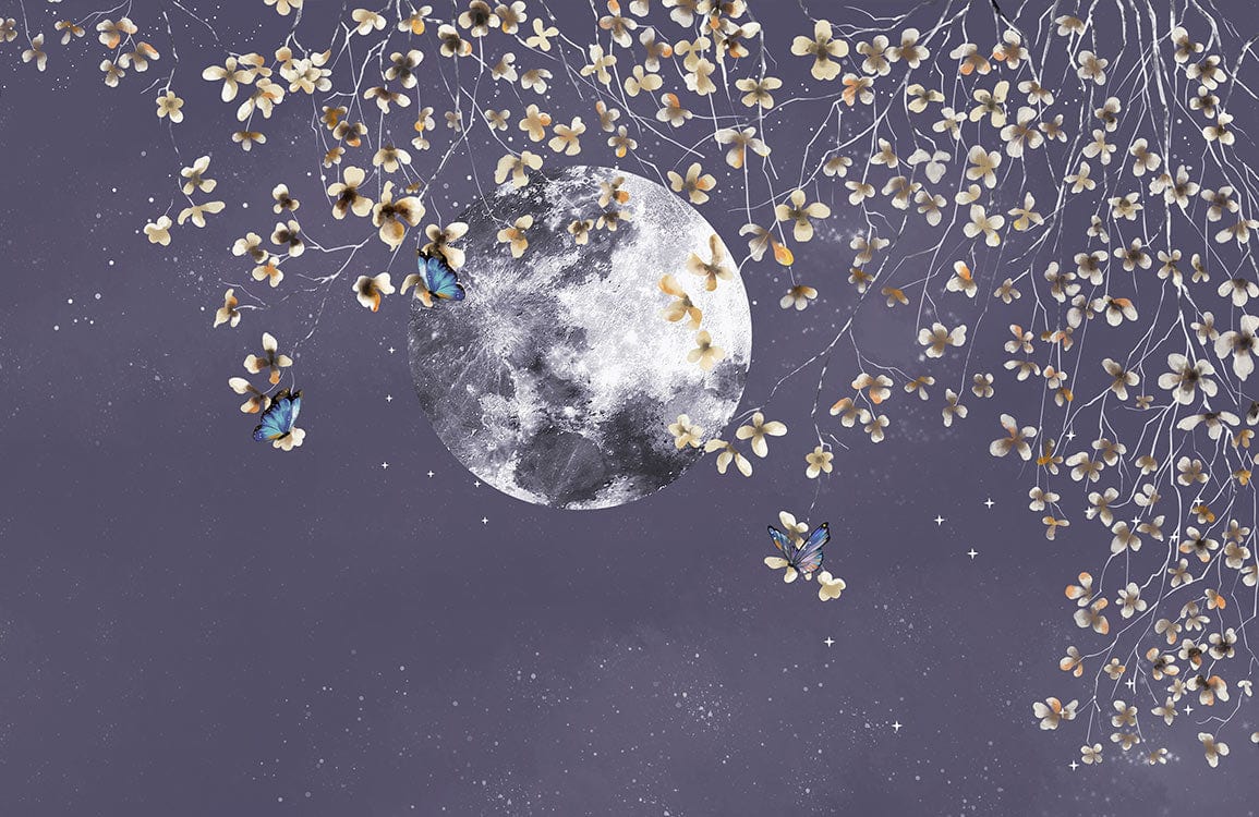 Stunningly beautiful and filled with colour, our Moon Night View Mural Wallpaper is a great addition to any room. With the realistic image of a nearby view of the moon at night, this mural will turn your bedroom or living area into a celestial space. Perfect for a star-gazing wall, this wallpaper features a stunning night sky with a full moon and all the characters of a perfect evening: twinkling stars, lively flowers, and shimmering butterflies. Whether light or dark, it has a low luster that will not compete with other decorative items in a room.