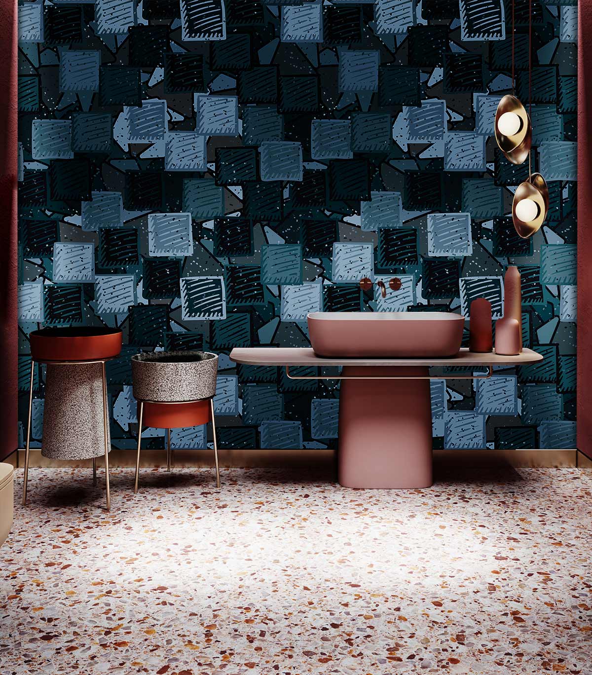 Have a moment to enjoy the modernity in it best looks, with a unique touch black and navy-blue patterns mixed in this mural wallpaper that will take your space to a new level of fun. A special pattern that will make your place look very modern and different. The wallpaper with a very detailed pattern to give a vibrant vibe to your place. This design is perfect for your living room, kitchen, bathroom, office hall, and many different places where this mural can do its magic and get the place out of the ordinality zone.