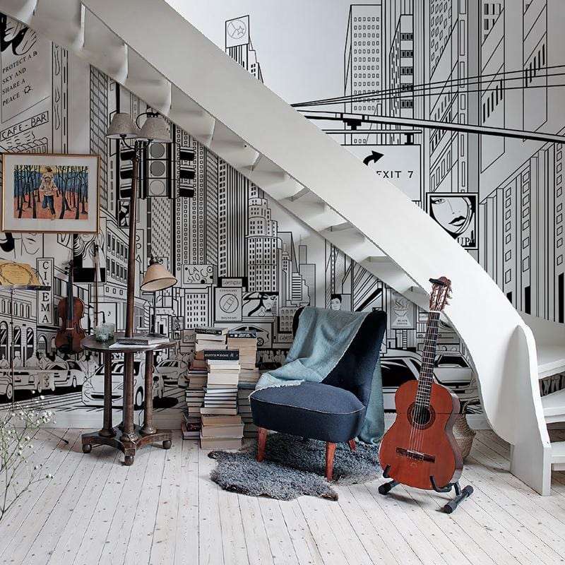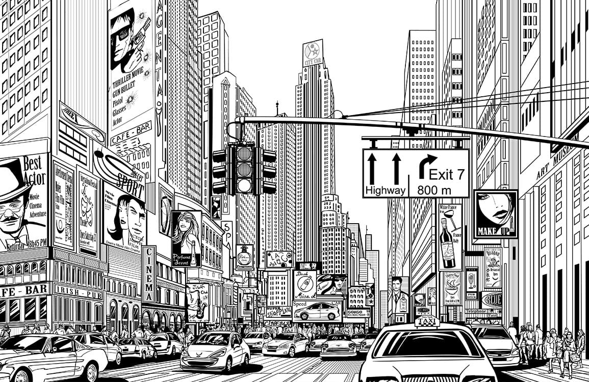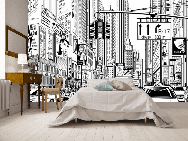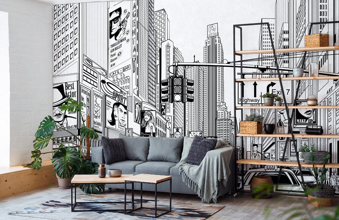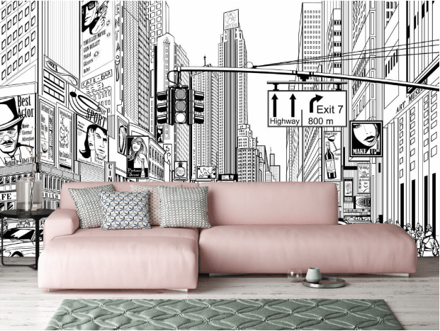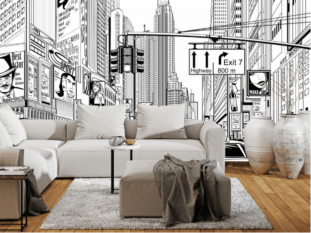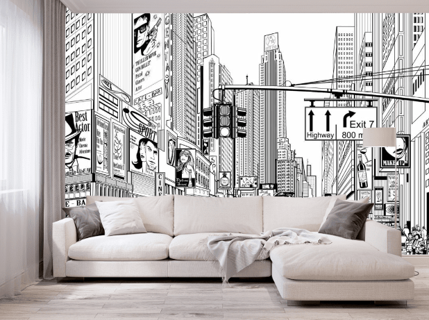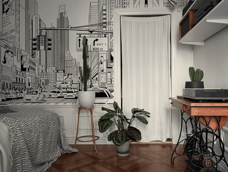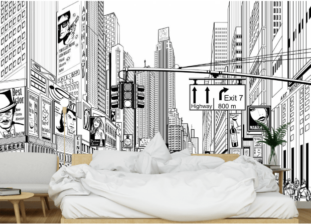 Create a unique space in your home with our hand-drawn New York City Wall Murals. This creative NYC street in black and white comic book painting style will surely add a touch of cool and uniqueness to your home. It will look amazing in your bedroom, dining room and hallway. This wall mural will also perfectly match your furniture and any other home decorations.