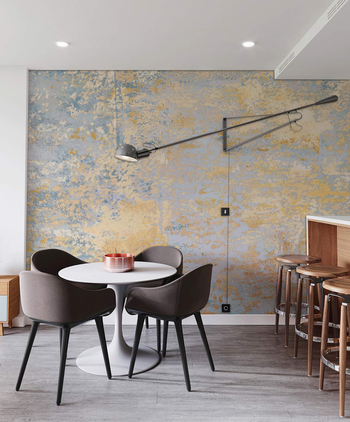 Put a stylish spin to your interiors with this metal textured Wall Murals series. Enrich your interiors with a rustic industrial look with this copper finish wall decal complete with the verdigris for an added effect. Create warm and cool effects with this magnificent dual-toned wall decal that will gladden your senses with its luxurious appearance. Use it as a feature wall to highlight a part of your living room in an extremely ornate style. Complement with metallic art for a glamourous effect.