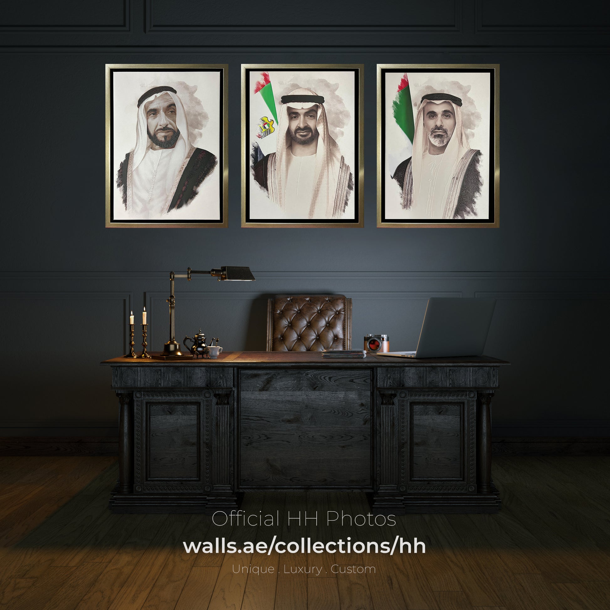 Immerse yourself in the splendor and dignity of the United Arab Emirates with our Official UAE HH Shaikhs Photos VIP Textured Embossed Printing Canvas. Crafted with meticulous attention to detail, this exclusive piece captures the essence of leadership and heritage, bringing a touch of royal sophistication to your home or office.