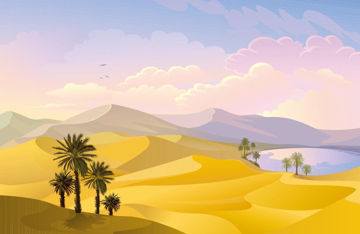 Adorn your wall with this beautiful ombre desert wall mural. The desert created in bright yellow in contrast with the mountain and sky in soft and dreamy ombre tone, which gives a strong visual impact. Why not use it in your bedroom, living room and even your child's room and add a peaceful and comfortable touch to your space.