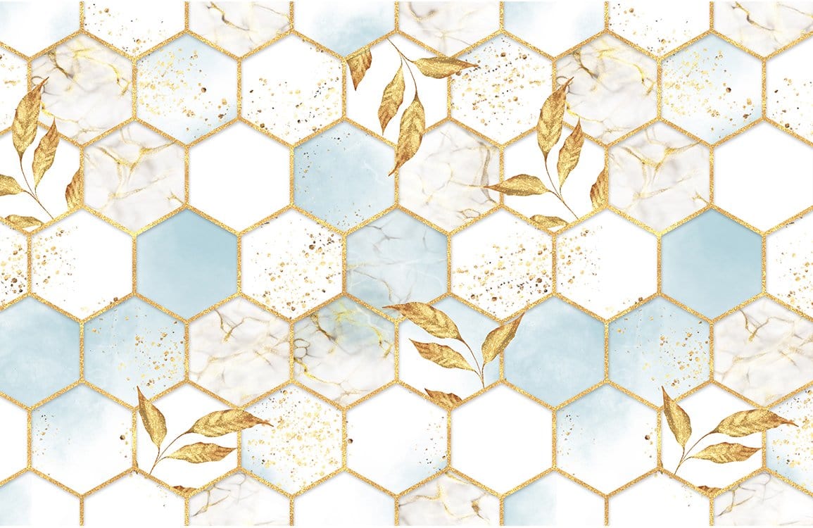 Welcome a sleek finish to your interior with this Marble Tile Effect Geometric Wall Murals, a fresh wall effect design that will impress. Featuring a?three colour?backdrop with stylish white marble tiles scaled up from the bottom, this unique design will be sure to add an eye-catching element to your theme. The fresh white, blue and golden tones offer a contemporary style that¡¯s perfect for modern kitchens, bathrooms and more.