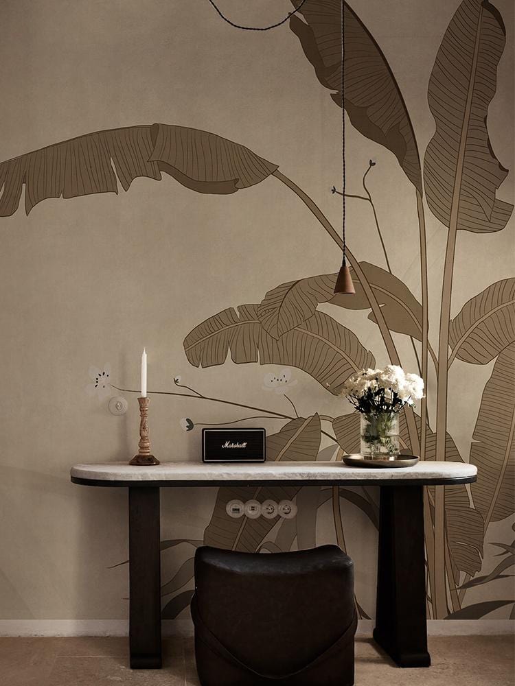Get an instant tropical look to your interiors with this attractive Wall Murals. Set in tones of earthy browns and seaweed greens, it casts a vintage look to the space that adorns this design.Perfect for use in the living room as a feature wall, it lives up to its striking appearance. Pair with traditional furniture for a charming look.