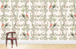 Beautify your home with this repeat parrot and leaf pattern Wall Murals. This design in natural tone background with green leaves crawling across your walls will bring a vintage yet fresh look to your rooms. Pair it with traditional furniture and home decors for a charming look to your Interiors.