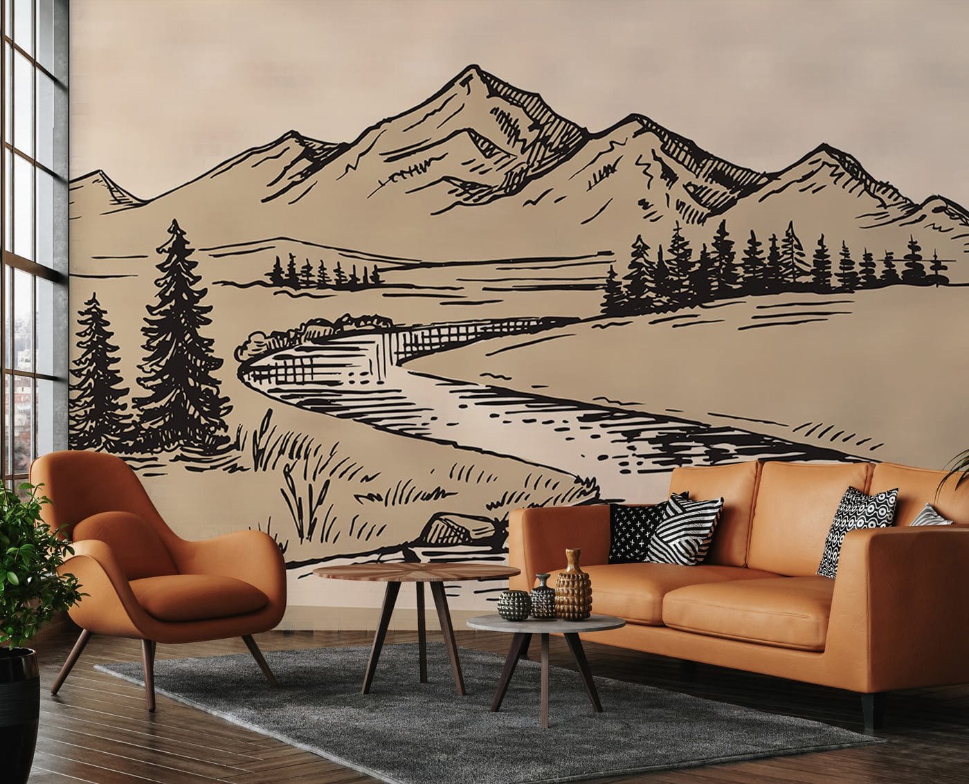Enjoy the beauty of a beautiful mountain foot view Wall Murals, with the vintage style, adding nostalgia tone into your interior space.