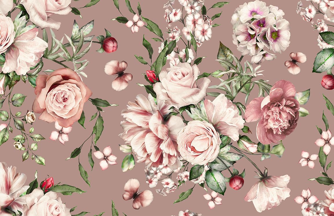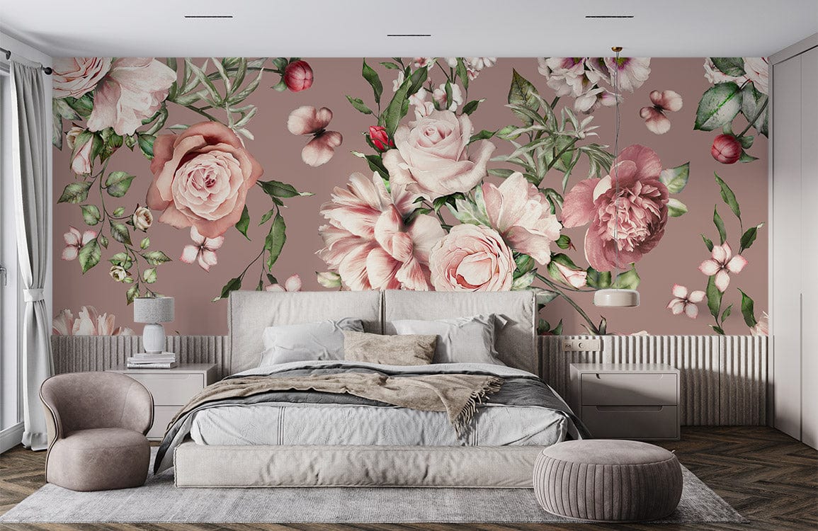 Pink Flower Bush Wall Murals