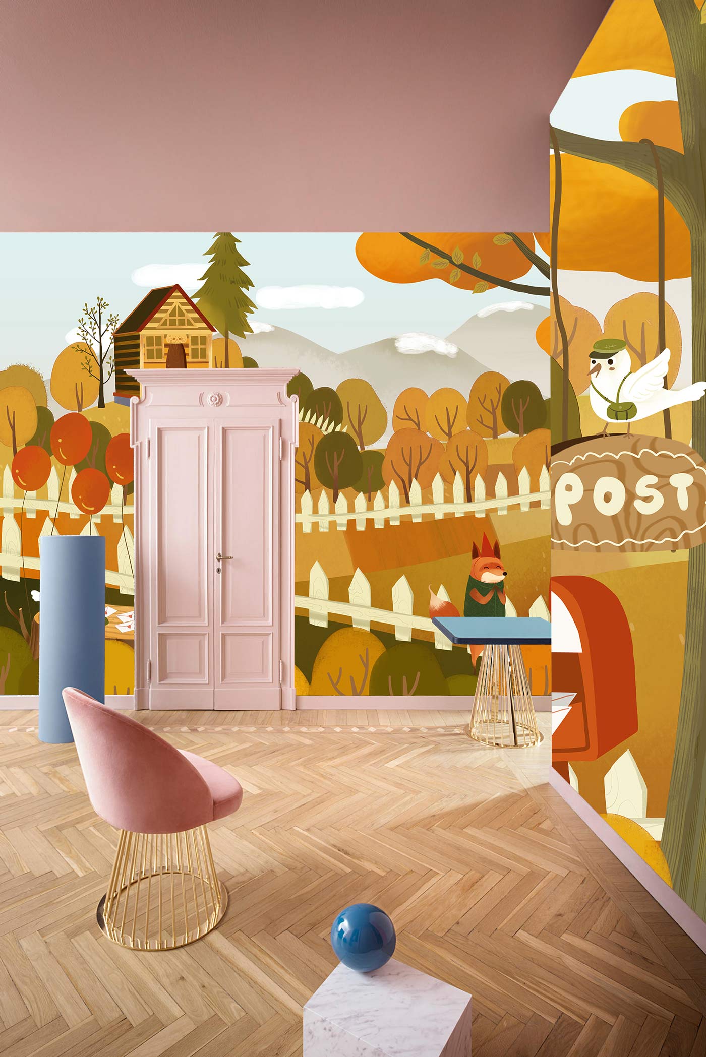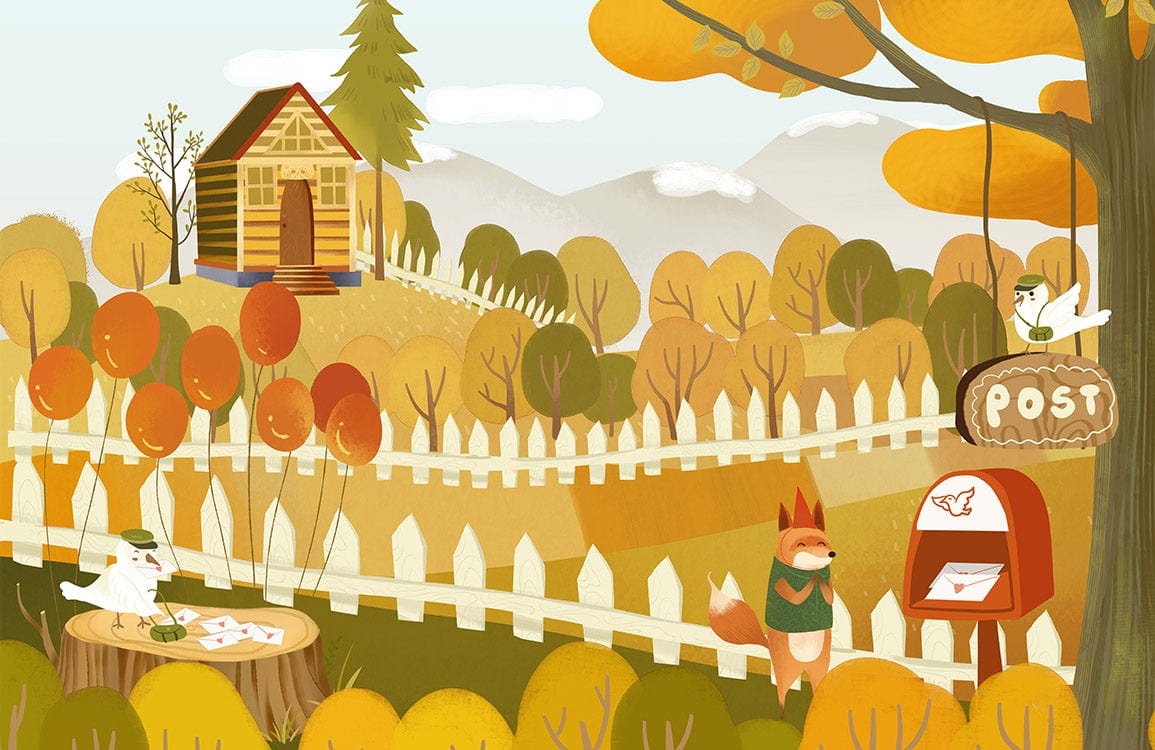 This cute animal Wall Murals is ideal decor to use as a background. The beautiful, amazing painting of animal postman sending letters for other animals in the forest will be perfect for your kid's bedroom and playroom. Interesting rendering with a natural atmosphere and a refreshing wall decoration perfect for your kids.