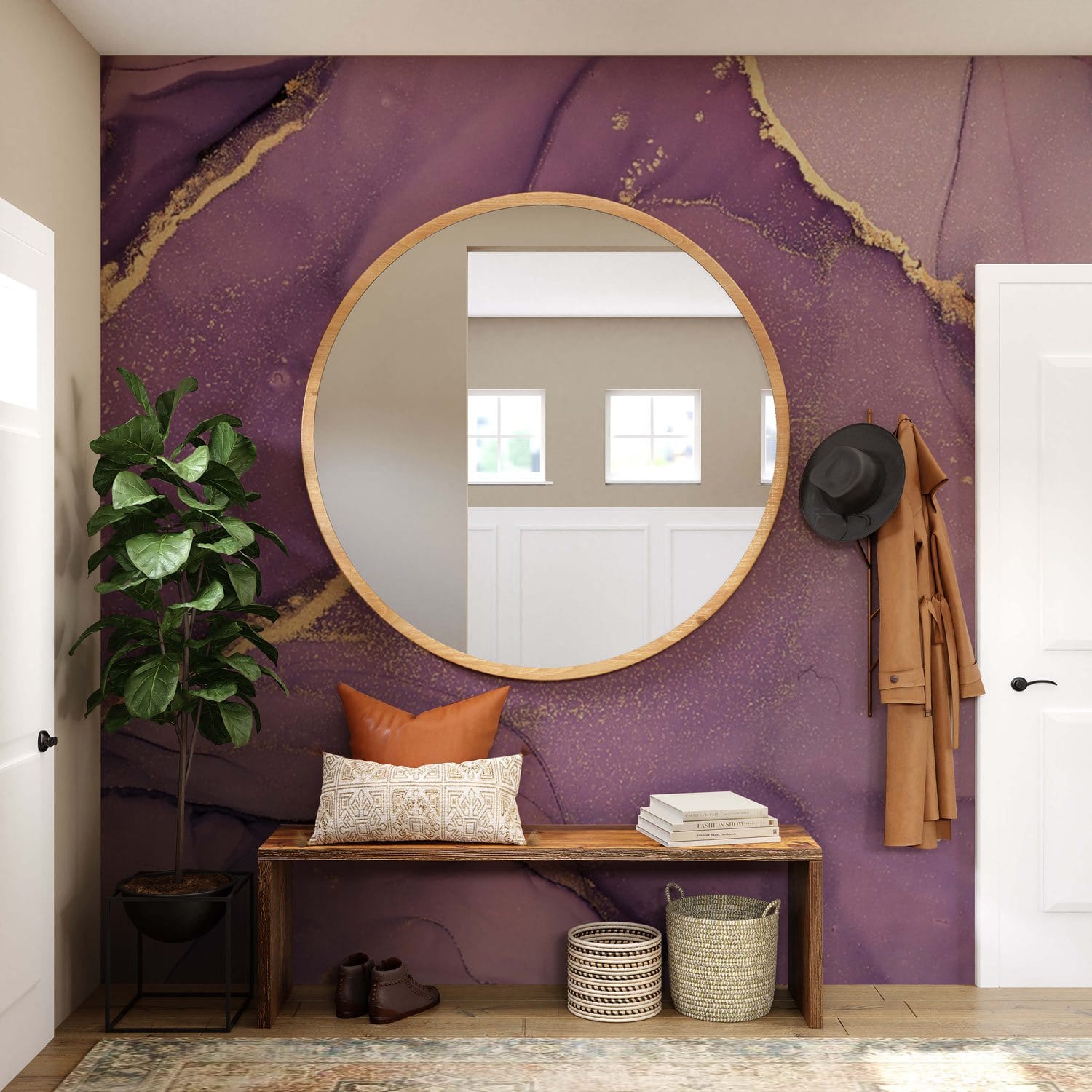 This purple marble effect Wall Murals is enhanced by gold lines of its cracks and veins. The beautiful purple colour marble is decorated with gold metal lines, which will level up your plain wall and the entire atmosphere of your space.It will work brilliantly in your bathroom, living room and hallway. Use this wallpaper to create a wow moment for your home.