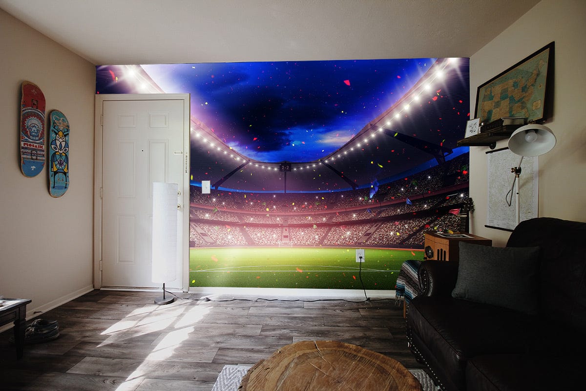A must-have for soccer fans, our Ribbon in Stadium Wall Murals will fill a modern, stylish touch to your home. Decorated with an intricate ribbon design and a stadium background, it's ideal for adding drama to your living room or bedroom. Designed to bring you a great feeling every time you see it, this awesome mural brings the excitement of soccer right into your living space. What makes it better? This fun wallpaper is easy to apply and remove (and reposition) if you ever want to rearrange or change decor.