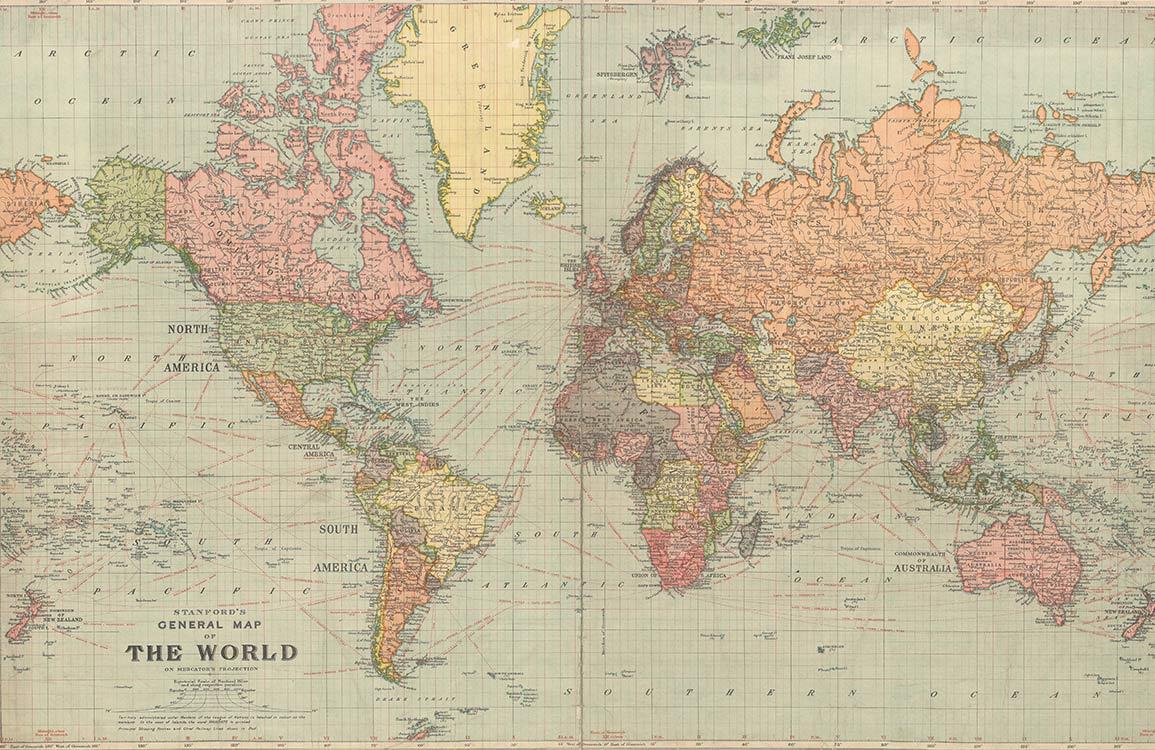 If you love geography, then get this custom-made vintage world map wallpaper to completely transform your home. With stunning old-fashioned features and excellent details, this world map will spice up your interiors.