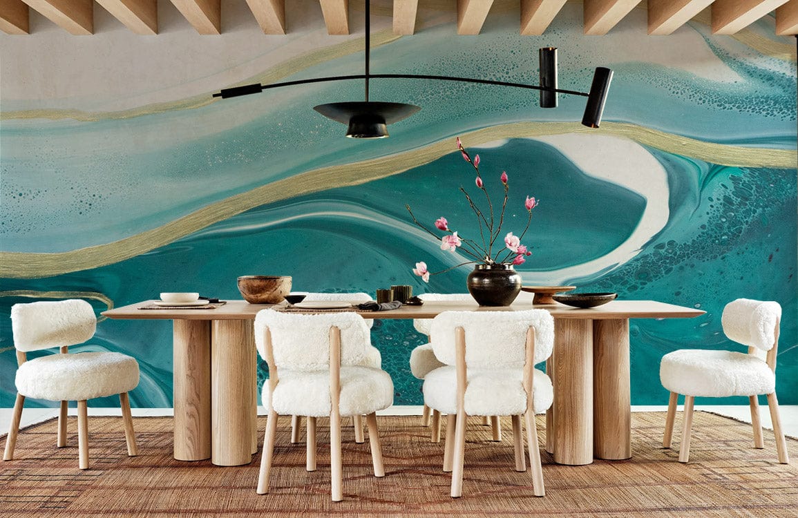 Create a eye-catching space in your home with our blue sea wave Wall Murals. This sea wave faux design is infused with modern and abstract. This amazing art wallpaper will surely level up your interior space and make whoever see it excited. Perfect wallpaper for your bathroom, bedroom and hallway.