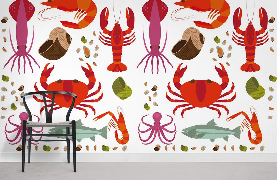 If you love seafood, then you are going to love this Wall Murals! This Wall Murals is designed with numbers of seafood?in colourful tones, which will surely brings energy an revamp your space! Great wallpaper for your living room and bedroom for a cool and unique look.