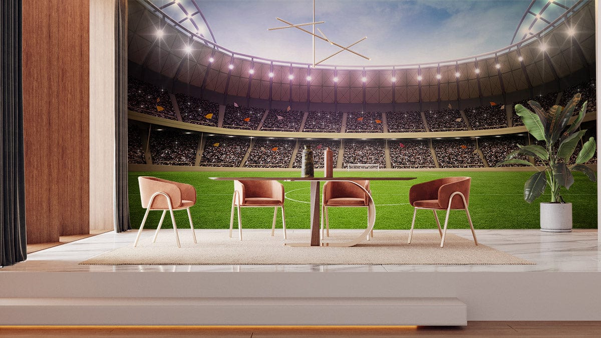 Stadium at Night Wall Murals is the perfect addition to your sports-themed living room or bedroom. The modern design features an epic stadium surrounded by lights and an open field that will give your home the vibe of being at a sporting event while you're relaxing in your living room. This mural is perfect for anyone who loves to play or watch sports or just wants a unique look for their walls.
