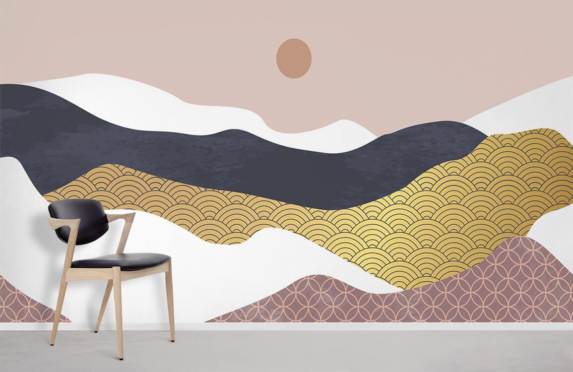 Add an instant grace to your room with this beautiful pink gold sunrise Wall Murals. The gold layer adds a strong visual impact and eye-catching effect to your interiors. Install this unique mountain land wallpaper in your bedroom and living room To achieve a charming and graceful look.