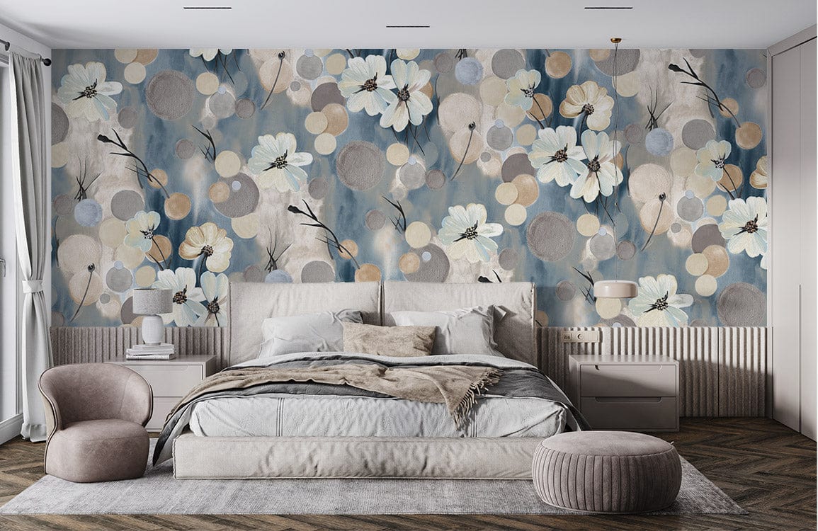 Perk up your space with this pretty as a flower peach floral Wall Murals. Watch your walls turn into a vertical showcase offlowers with this enchanting water colour painted roses and wildflower design. The subtle colours of white in contrast with the navy add heaps of drama and creates an intricate floral pattern across your walls. Highlight your living room wall with sublime sophistication with this cute wall decal that promises to infuse freshness into your interiors. Use furniture in soft colours to add effect to the design.