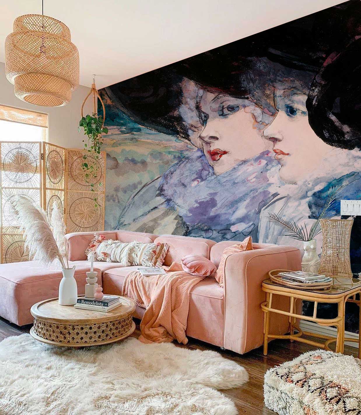 Three women in profile was painted in high resolution by Henry Somm. This beautiful mural depicts three elegant women who are staring into the distance. Whole mural depends on the cool colour and uses slight warm colour to change tinge. No matter what occasion you are in, this mural can be the unique one. Invite this mural into your room, you will embrace elegant taste and aesthetic tone.