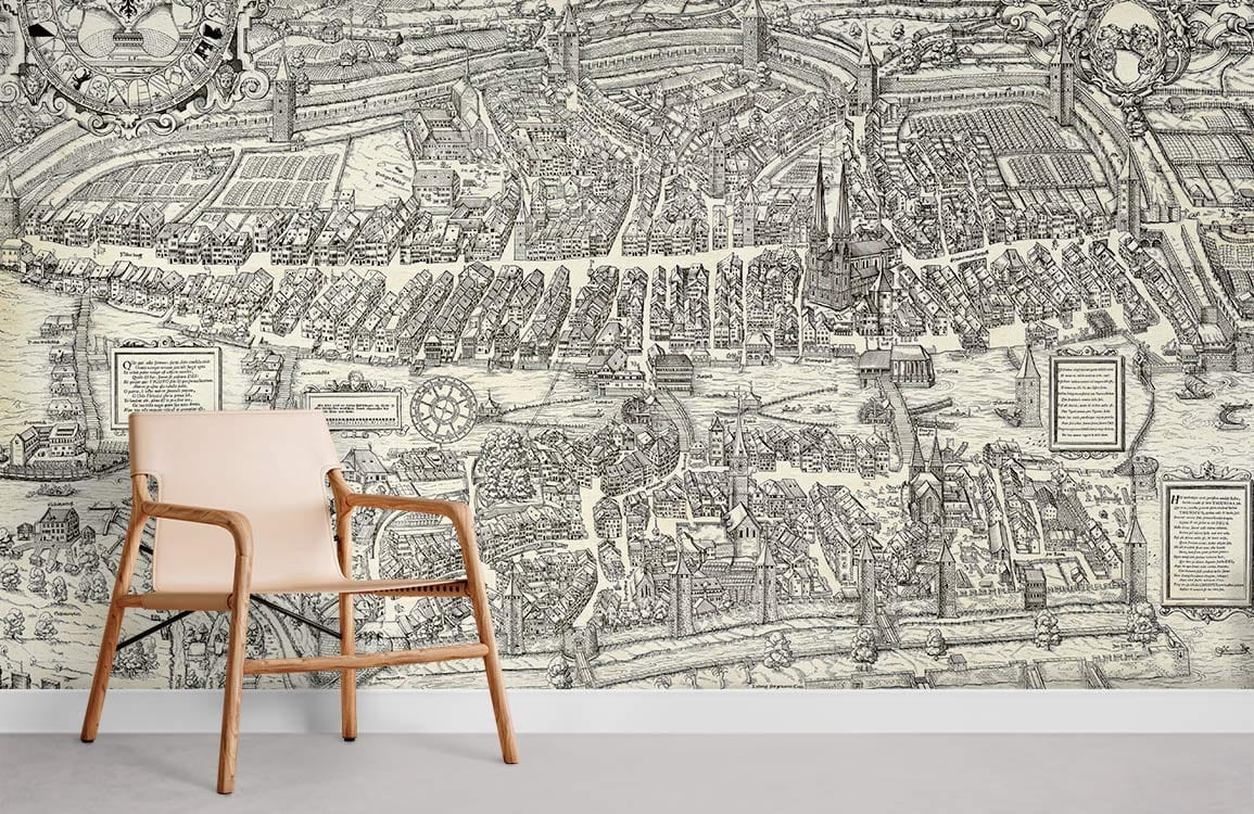 This vintage style map of the city and town is a fantastic background for your rooms. All of the areas and districts of the city have been clearly detailed in this map, as well as rivers and roads. Suitable for all your home office, study room, beddroom and hallway.