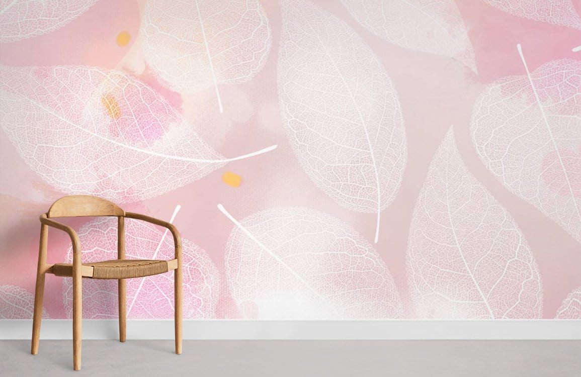 Pink Leaves Line Wall Murals