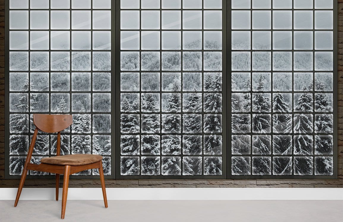 Look through the window and enjoy the beautiful snow scenery with this winter landscape of snowy forest view through Wall Murals. Add a peaceful touch and expand your room space with snowy pine forest. Perfect nature wallpaper for your bedroom and living room.
