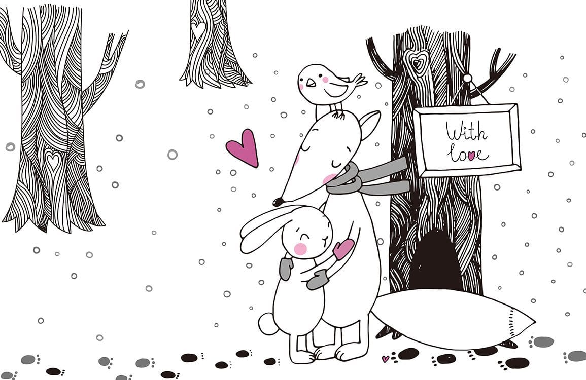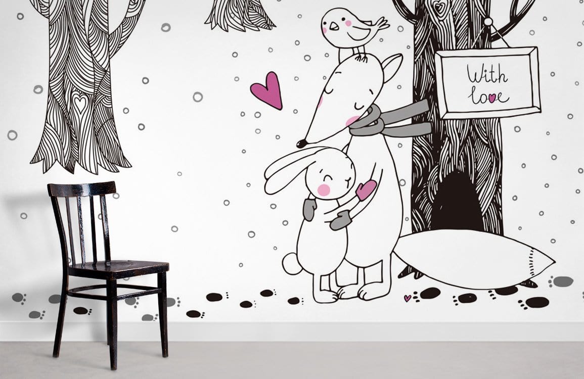 Watch your child's enthusiasm as you dress up his room walls with this adorable Wall Murals. This hand-painted design of cute forest animals hugging each other with love and care are sure to delight your kiddo out of bounds. Complement the design with furniture in white and grey tones for an extraordinary look.