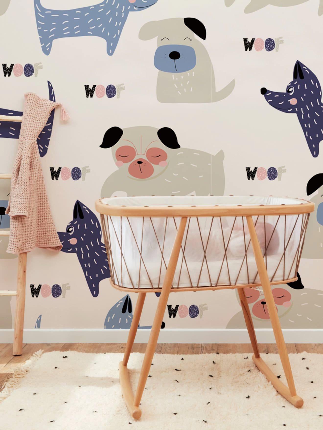 Your child is going to love this adorable woof and dog Wall Murals. This funny cartoon dog and woof wallpaper would make an excellent feature wall in your child¡¯s bedroom. Created with child-safe non-woven paper, our affordable mural wallpapers will surely add a graceful touch to your interiors.