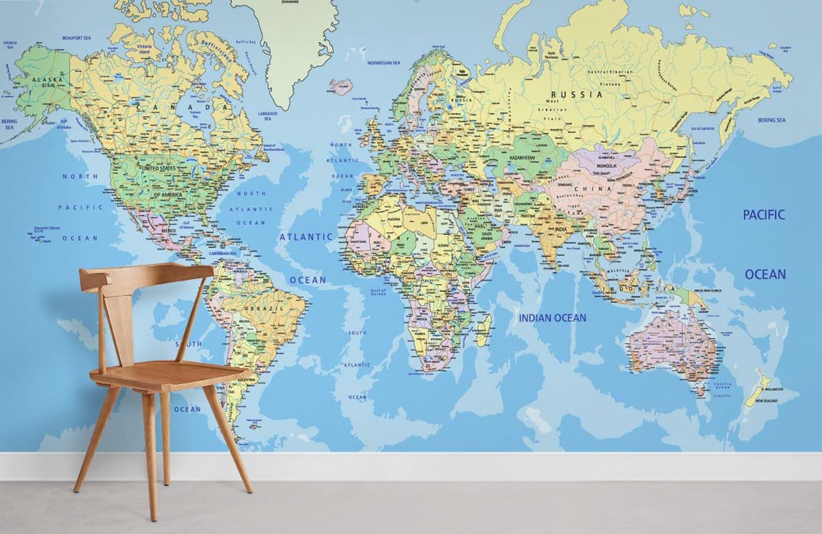 Explore a vast range of beautiful world map Wall Murals selections from (walls.ae). This map wall mural is ideal for adding a splash of colour to any place in your bedroom or home office. Works well with modern style furniture of your choice.