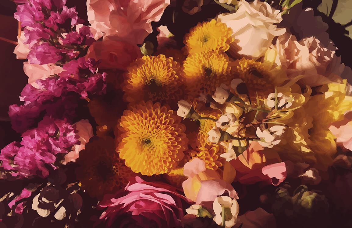 Splash some colours onto your walls with this beautiful flower bud Wall Murals. This pink and yellow flower bouquet painted in water colour effect wallpaper will look great especially in your living room and bedroom. Enjoy the made-to-measure wall mural and brings natural close to you in your interiors.