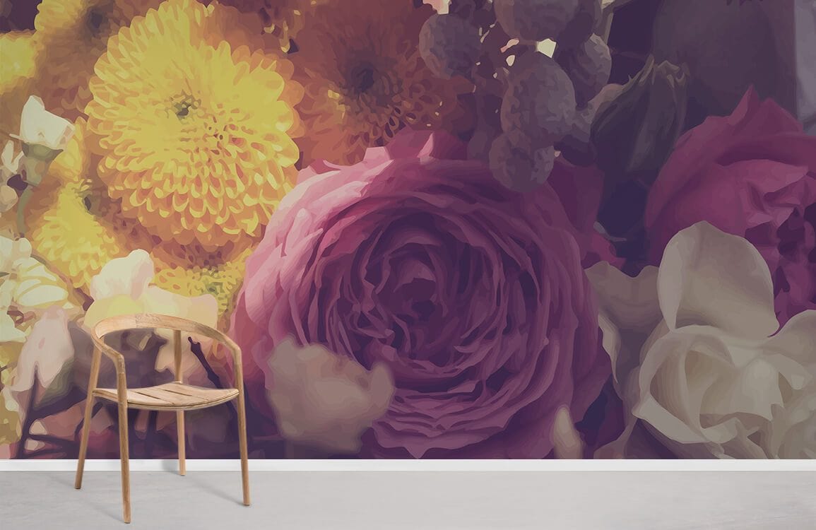 Splash some colours onto your walls with this beautiful flower bouquet Wall Murals. This stunning yellow and purple flower bouquet painted in vivid water colour effect wallpaper will look great especially in your living room and bedroom. Enjoy the made-to-measure wall mural and brings natural close to you in your interiors.